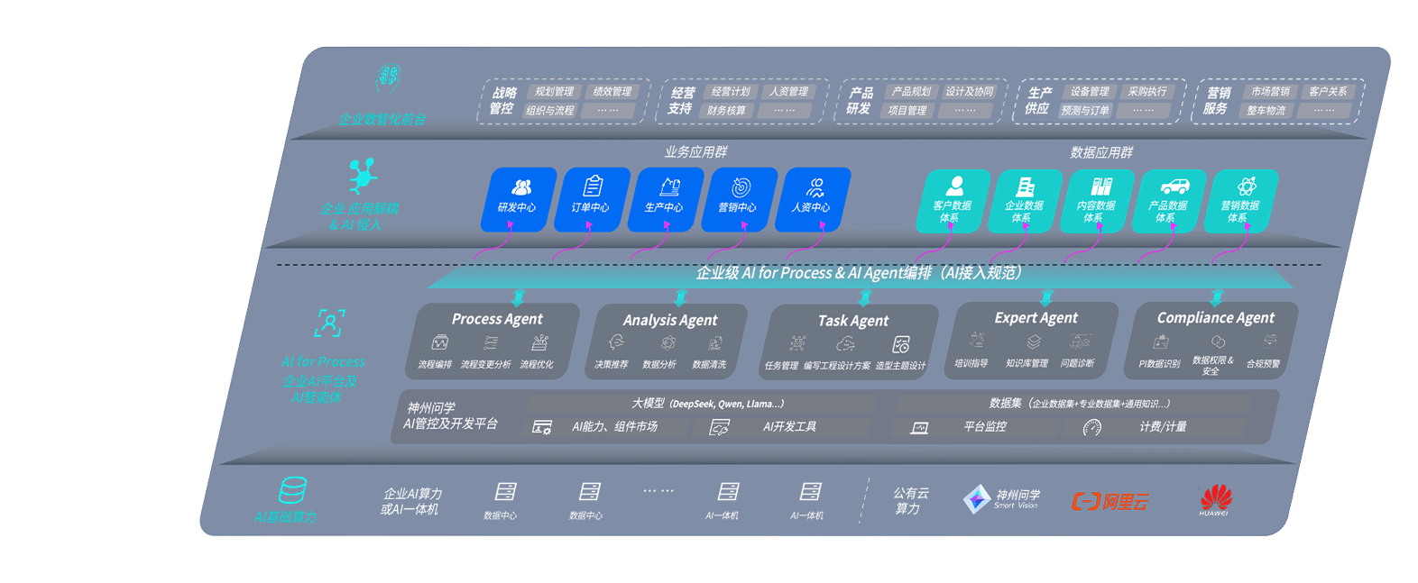 端到端的一站式AI工作空间深度融合了从企业战略规划到日常经营的全流程业务板块,,,定向解决车企内部领域多、、、部门多、、链条长、、场景碎片化等难题,,支持车企快速构建以AI为核心的生产力写作体系,,实现任务执行与AI能力的无缝集成与交互